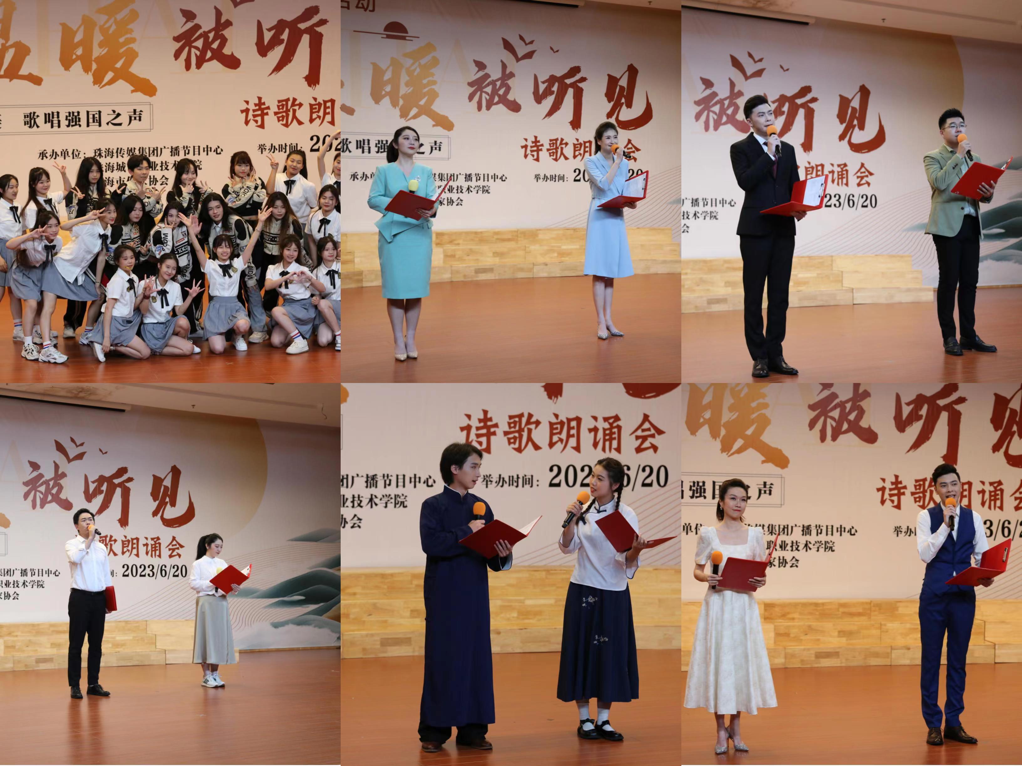 本次活动由中共珠海市委宣传部、珠海市文明办主办,我校和珠海传媒集团广播节目中心、珠海市作家协会共同承办。诗歌朗诵会以“诗颂青春之美,歌唱强国之声”为主题,表演者们通过原创诗歌、经典作品、情景诗朗诵、合唱等多样化的表演方式,用深厚的家国情怀和激情澎湃、昂扬向上的时代强音,表达青年对党和祖国的热爱、强国复兴有我的决心,展现广大青年奋进新征程、建功新时代的蓬勃力量。