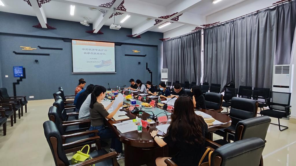 (人文学院 报道)10月12日下午,人文学院在博雅楼307召开学前教育专业扩招教学及就业工作会议,珠海市欧亚技工学校、中山市工贸技工学校、香山教育三个校外教学点相关领导与老师到会,教务科罗安娜科长、人文学院领导班子成员、学前教育专业教师参会。