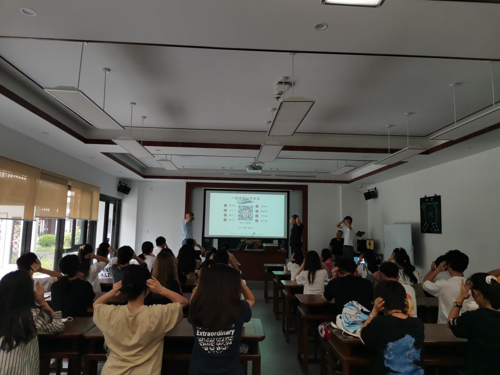 双方在博雅楼美育中心会议室开展座谈,重点探讨了非遗传承合作育人、非遗传承基地建设、大师工作室建设、校园义诊等合作事宜。随后,韩竞生大师在学校中华优秀传统文化教育实践基地开展了非遗体验活动。韩大师介绍了一指禅推拿的文化与学术脉络,并示范了主要的推拿技法,传授了一套醒脑护颈中医保健操。活动现场学生们积极回应,认真操作,兴致盎然,并表示参加此次非遗体验活动很有收获,也很有意义。