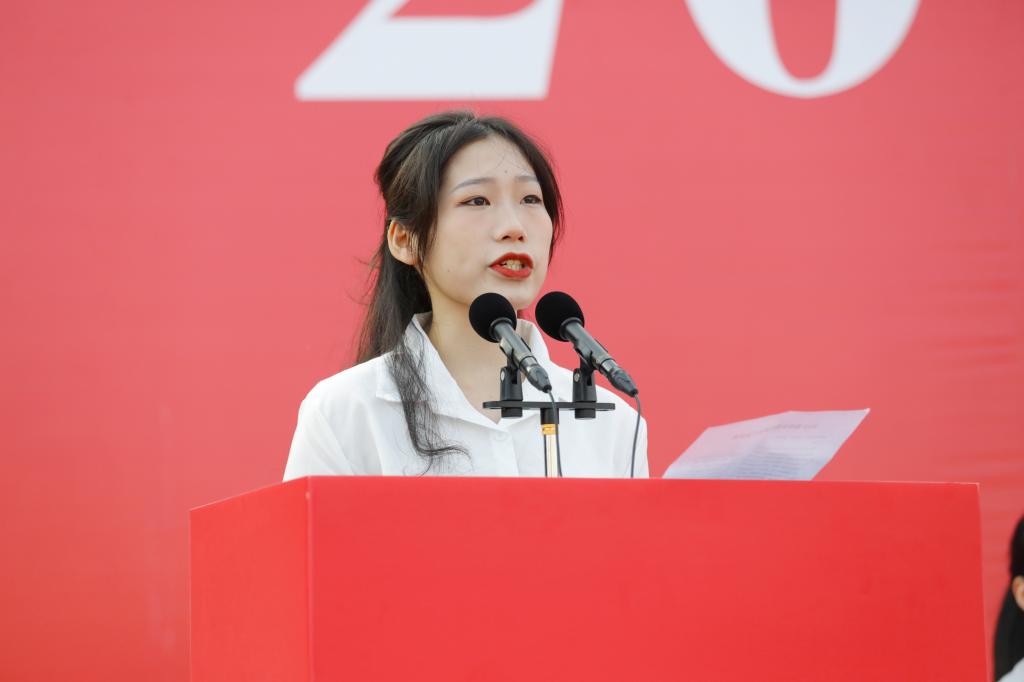 人文学院2022级学前教育专业陈祖琪同学代表新生发言。她表示将秉校训,努力学习专业知识,刻苦锤炼职业技能,立志成为新时代优秀的技术技能人才!不忘初心,以行践知!(审核:周雁嫦)