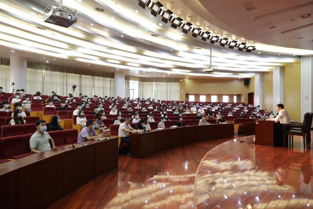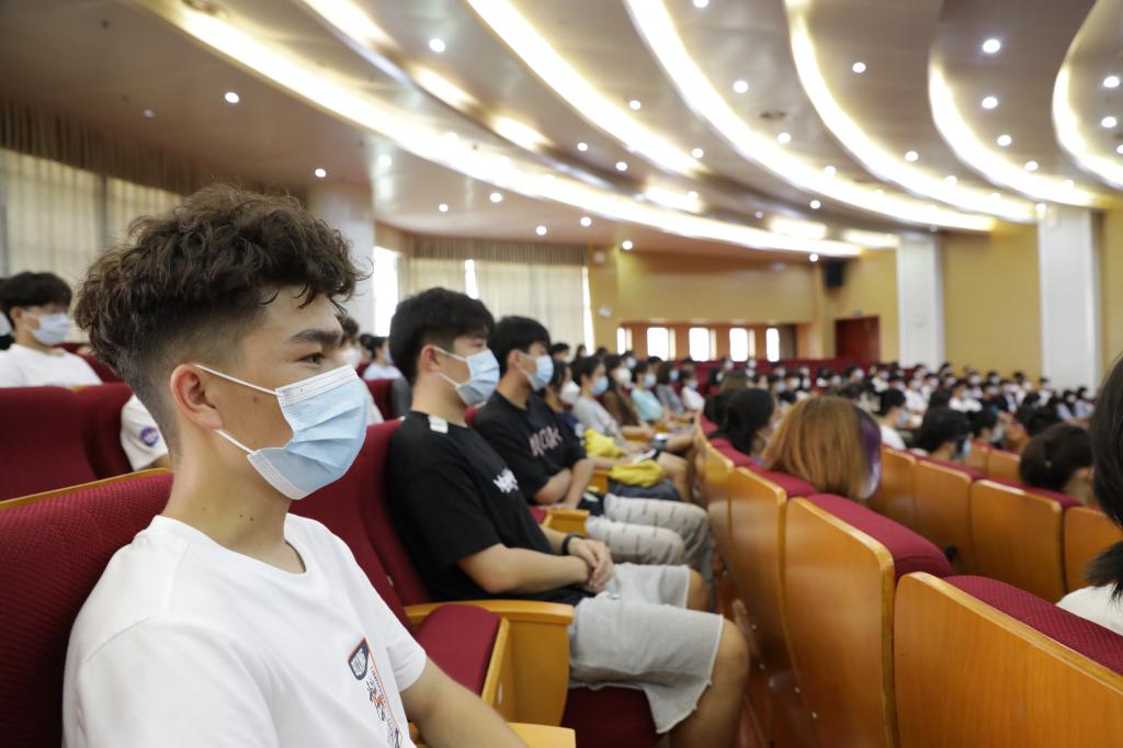 (马克思主义学院 报道)9月19日上午,我校党委书记钟以俊在行政中心学术报告厅为150余名大一新生讲授开学第一课——“传承弘扬建党精神,迎接党的二十大”,马克思主义学院院长白立强主持。