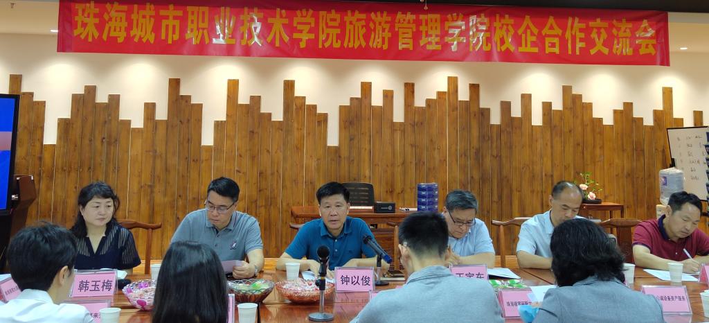 (旅游管理学院 报道)为扎实推进“高校书记校长访企拓岗促就业”专项行动,全面深化校企合作、供需对接,拓宽学生的实习和就业渠道,6月8日上午,旅游管理学院在致远楼309室召开校企合作交流会。珠海度假村酒店、珠海航展公司、珠海国际会展中心、珠海长隆投资发展有限公司、珠海瑞吉酒店、珠海华发喜来登酒店等20多家当地龙头企业应邀参会。校党委书记钟以俊、副校长王宇东出席会议并发表讲话,交流合作处和旅游管理学院主要领导及部分教师等参加了会议。