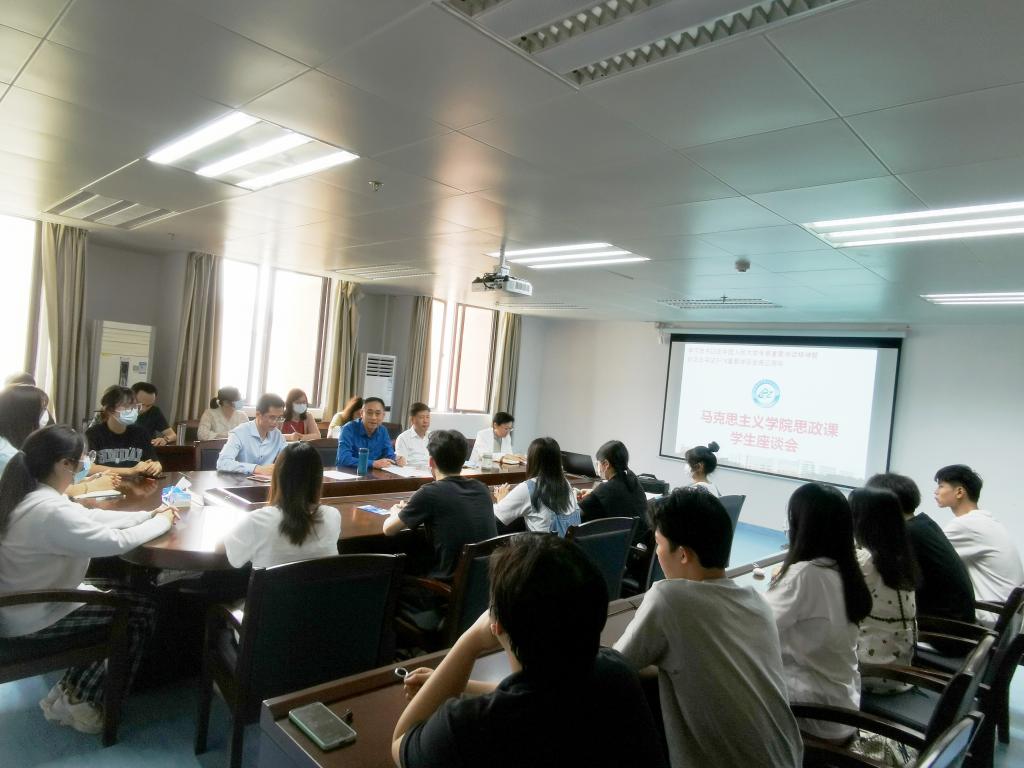 (马克思主义学院 报道)为深入学习贯彻习近平总书记在中国人民大学考察时的重要讲话精神,5月18日下午,马克思主义学院在行政楼1002集体备课室召开思政课学生座谈会,校党委书记钟以俊、马克思主义学院院长白立强、质量管理和科研处副处长徐波、马院各教研室主任以及各专业学生代表参加座谈,会议由马克思主义学院副院长欧阳效升主持。