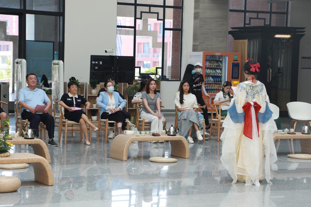 (图书馆 报道)在2022年职业教育活动周到来之际,为宣传展示我校学生职业风貌、树立职业教育良好形象、检阅我校职业教育成果,5月19日下午,图书馆在二楼大厅组织学生社团青缃汉社、茶道协会以“技能:让生活更美好”为主题,举办了“汉服舞翩跹,品茗诵诗篇”古诗词吟诵会,内容包括汉服走秀、茶艺表演、插花表演、诗词吟诵等内容,为现场师生带来了一场集视觉、嗅觉、味觉、听觉于一体的文化体验活动。图书馆馆长吴禹春、副馆长谢岱和师生代表共同参加了本次活动。