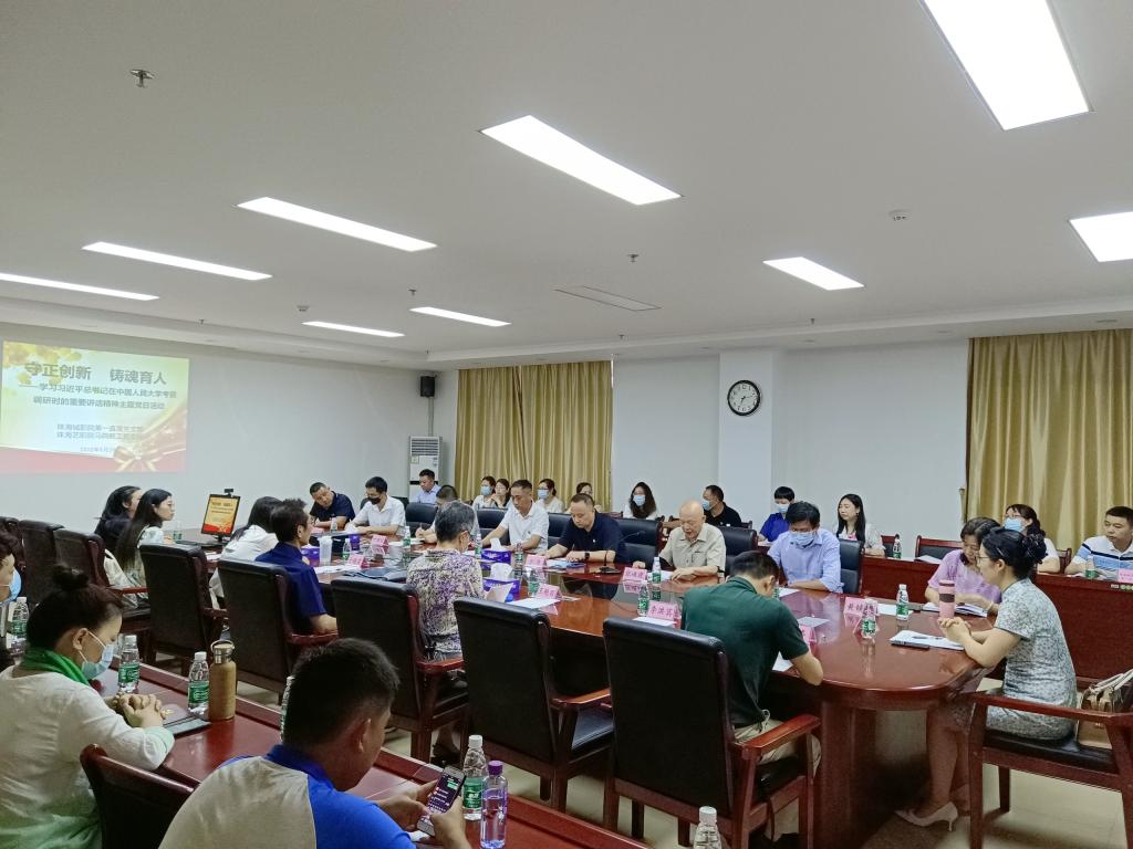 (第一直属党支部 报道)为深入学习贯彻习近平总书记在中国人民大学考察时的重要讲话精神,认真总结思政课教学改革、课程建设、学术研究、社会服务等方面的经验,5月24日下午,我校第一直属党支部与珠海艺术职业学院马院教工党支部联合开展“主题党日”活动。活动以《守正创新、铸魂育人,推动思政课改革创新》为主题。珠海艺术职业学院党委书记方华和两校马院的全体党员参加了活动。