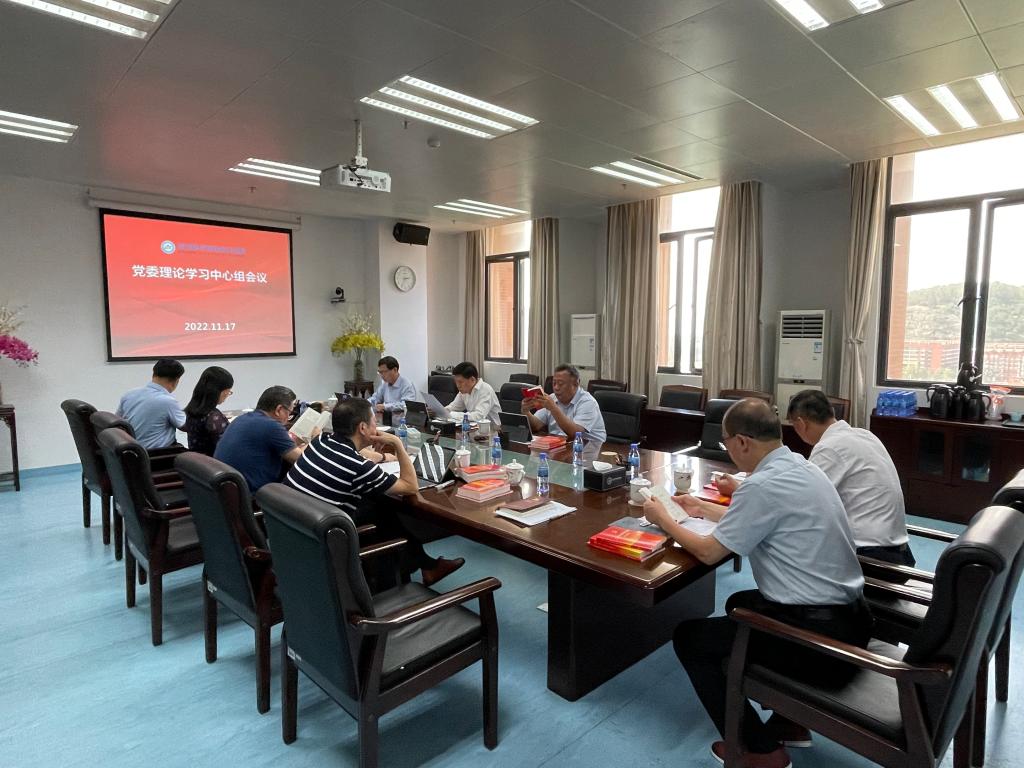 (党委宣传部 报道)11月17日,学校党委理论学习中心组在行政中心1107会议室召开集体学习会议,传达学习党的二十大精神。党委书记钟以俊主持会议并讲话。
