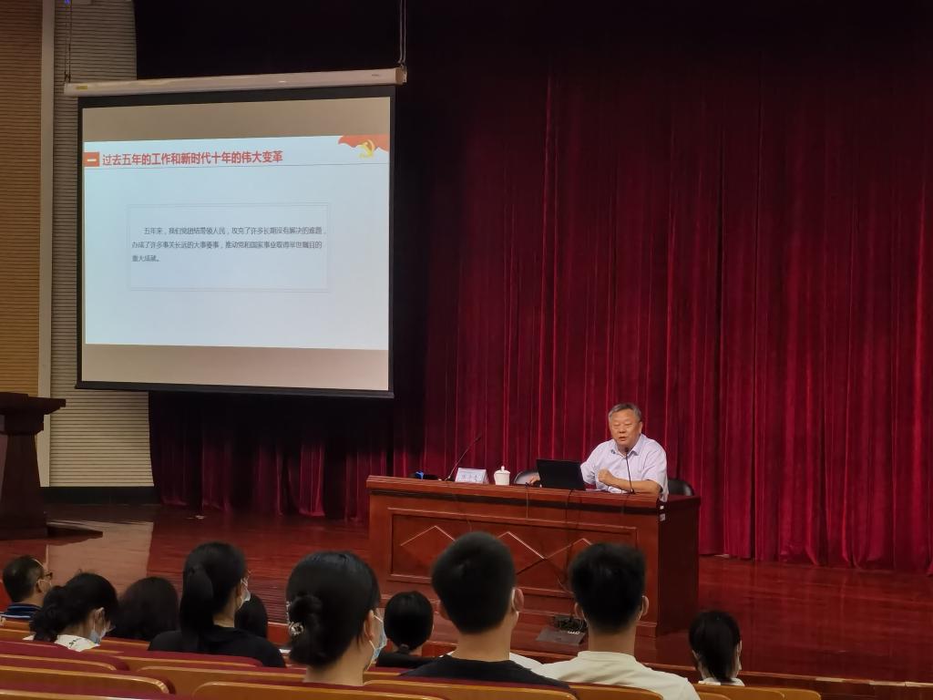 陈校长从党的二十大的主题、过去五年的工作和新时代十年的伟大变革、马克思主义中国化时代化、中国式现代化等多个方面,对党的二十大精神进行了深入浅出的阐释。陈校长指出认真学习贯彻党的二十大精神,是当前和今后一个时期的首要政治任务,鼓励教师落实立德树人任务,抓好青年工作,办人民满意的教育;勉励青年学生坚定不移听党话、跟党走,做新时代好青年。课后,师生围绕学习贯彻党的二十大精神在易班平台开展热烈讨论。(审核:郭江平)