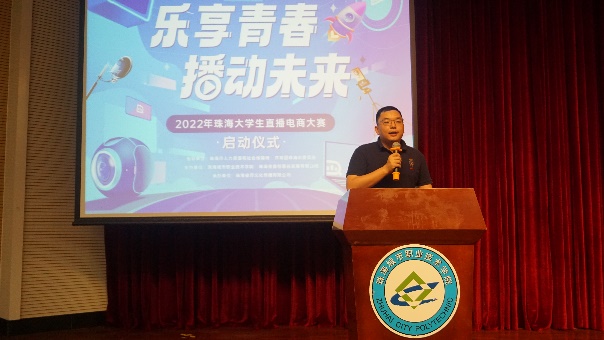 (经济管理学院 报道)10月24日下午,“乐享青春,播动未来——2022珠海大学生直播电商大赛”决赛启动会在我校行政中心310报告厅圆满召开,校党委委员、副校长王宇东、经济管理学院党总支书记刘敏、院长王新桥、副书记萧琳、副院长沙蓓蓓参加此次活动。本次大赛由珠海市人力资源和社会保障局、中国共产主义青年团珠海市委员会指导,我校和珠海金嘉创意谷发展有限公司主办,珠海睿弈文化传播有限公司承办。