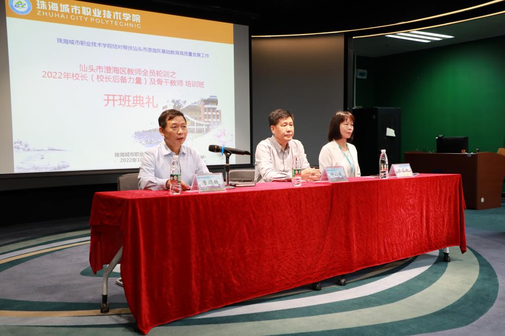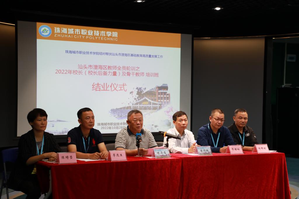 (人事处 报道)10月24-28日,我校组织汕头市澄海区校长(校长后备力量)、骨干教师第一期培训班,我校党委书记钟以俊、校长陈斗雪、党委副书记唐顺铁分别参加了开班仪式和结业典礼。本次培训是我校结对帮扶汕头市澄海区基础教育高质量发展的开篇之作,也是我校落实《广东省教育厅关于做好全口径全方位融人式帮扶粤东粤西粤北地区基础教育高质量发展工作的通知》(粤教师函〔2021〕27号)的重要举措。目的在于提升澄海区中小学校长及骨干教师的专业能力、更新教育观念、改革教学方法、提升综合素质,助力澄海区基础教育工作者成为创新型教育者。