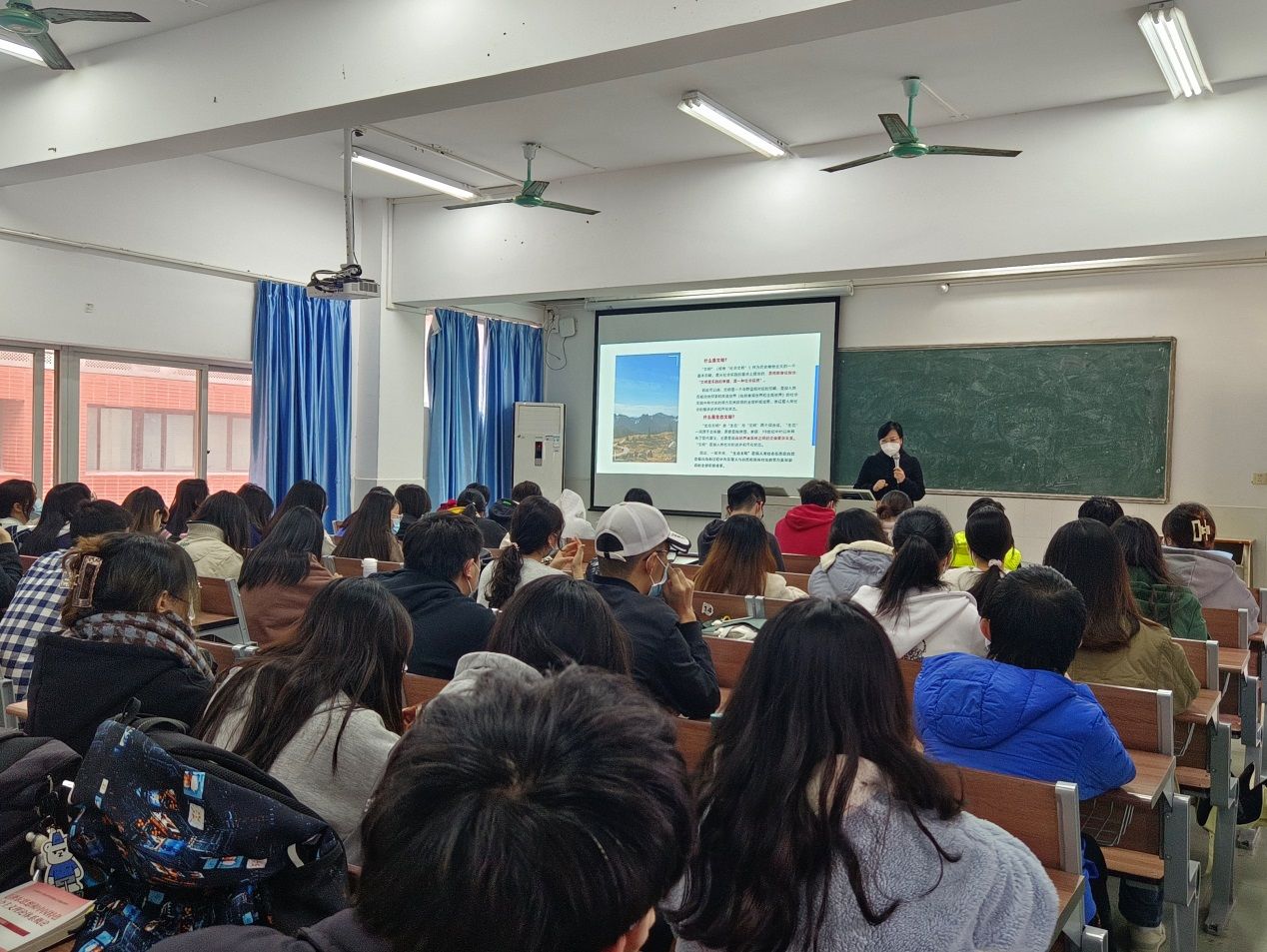 12月14日,校党委委员、组织部部长金焕来到崇文楼303教室,与马克思主义学院教师戴业凤老师共同为21级大数据3班和21级电子1班的同学们讲授了题为《生态兴则文明兴——建设美丽中国》的思政课。课后,金焕部长对戴老师的授课进行点评,并提出改进建议。