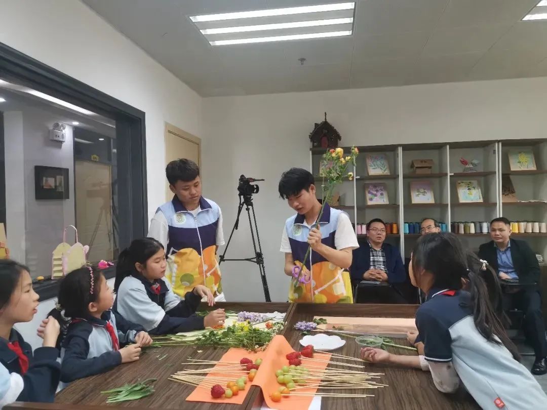 自2021年11月金湾区连湾小学与广东省中小学劳动教育基地(珠海城市职业技术学院)共同签订了共建协议,近一年多的时间里,两校开展了近十次“职普融通”劳动教育实践活动。3月3日当天,金湾区连湾小学二十多名师生受邀参加我校劳动课程展示活动——会展活动布置之创意花卉展示。课程以“会展活动布置”为引导,以创意花卉为媒介进行自然美学认知,引导孩子对植物材料进行观察、整理,通过植物的组合创造出孩子眼中的奇妙自然。