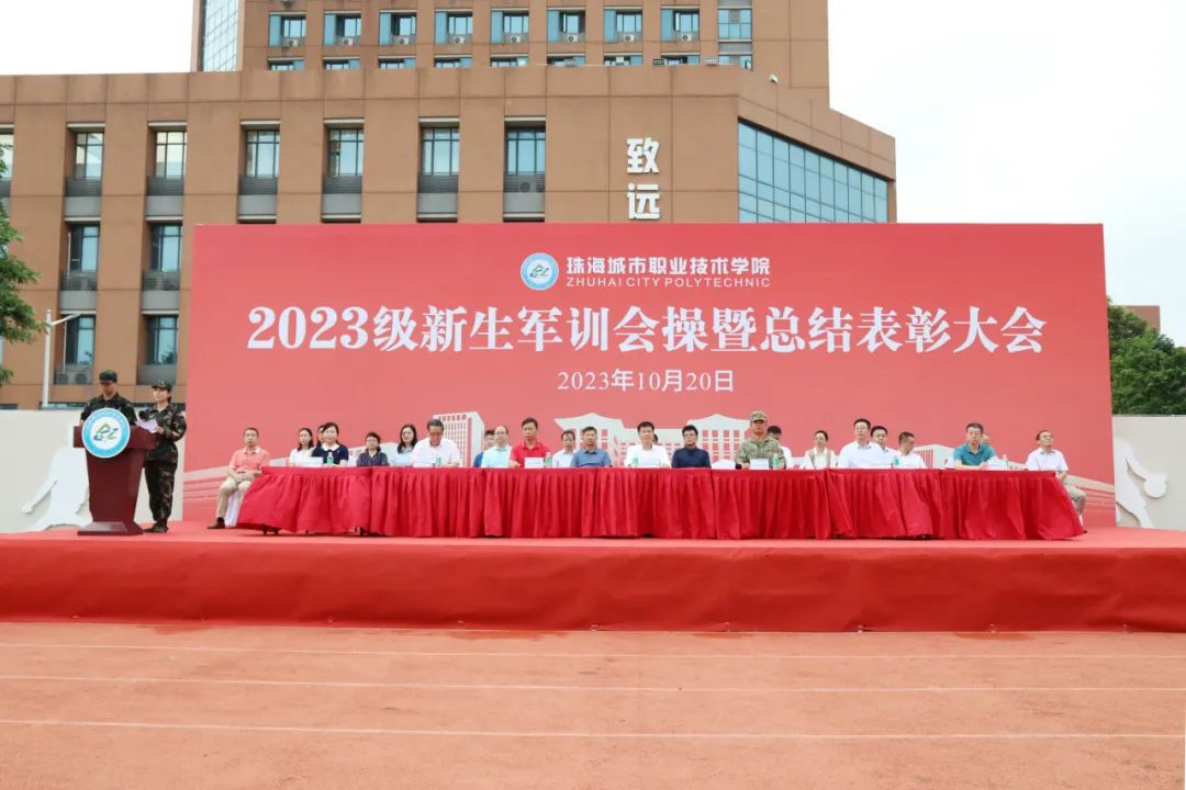(学生工作部 报道)2023年10月20日上午,我校在田径运动场举行2023级学生军训会操暨总结表彰大会。在校领导班子成员、各处(室)负责人、二级学院领导班子成员、全体教官、辅导员、2023级新生班主任、参训学生参加大会。
