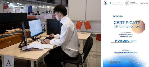 11月12-19日,我校参赛选手谭惠勇同学(技术指导教师杨宝鹏、翻译指导教师张彦东)前往俄罗斯叶卡捷琳堡国际展览中心,参加俄罗斯技能发展署、金砖国家工商理事会(俄罗斯)技能发展工作组、金砖国家工商理事会(中方)技能发展工作组举办的2023(俄罗斯)金砖+欧亚高科技公开赛“机械设计 CAD 赛项”,该赛项有来自8个国家和地区,共34支参赛队伍参赛,其中俄罗斯选手均来自该国各企业的骨干工程师。我校参赛选手谭惠勇同学经过连续3天的高强度比赛,在技术指导教师、翻译指导教师的共同努力下,克服语言困难、顽强拼搏、临机应变,在装配建模与详细工程图、机械设计挑战、逆向工程设计3个竞赛模块中表现优异,取得了第三名的好成绩,并荣获该国际赛项铜牌。