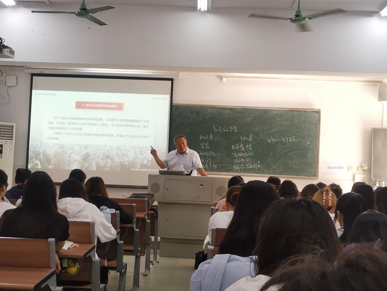 陈校长结合自身经历,深入浅出地讲解了社会主义的根本任务和发展战略。正如邓小平同志所讲:“发展才是硬道理”。我国处于社会主义初级阶段,中国解决所有问题的关键在于发展。判断经济建设成败,要以是否有利于发展社会主义社会的生产力,是否有利于增强社会主义国家的综合国力,是否有利于提高人民的生活水平为标准。国家发展有战略安排,学校发展也有战略安排。陈校长结合我校的发展规划,生动地讲述了“三步走”发展战略的重要内容和重要意义。鼓励同学们要结合课堂学习内容,思考自己在大学期间的主要任务及职业发展规划,珍惜青春,不负韶华,积极主动地投身于新时代的社会主义建设之中。