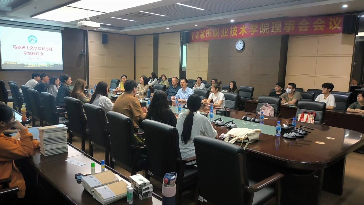 (马克思主义学院 报道)为深入开展学习贯彻习近平新时代中国特色社会主义思想主题教育,落实立德树人根本任务,结合学院实际深入开展调查研究,倾听学生的心声和了解学生的诉求,2023年12月11日下午,马克思主义学院院长白立强,副院长欧阳效升、蔡建文,知行社指导老师杨敏与知行社的同学们在行政楼212会议室召开座谈会。