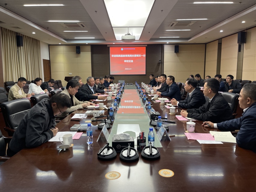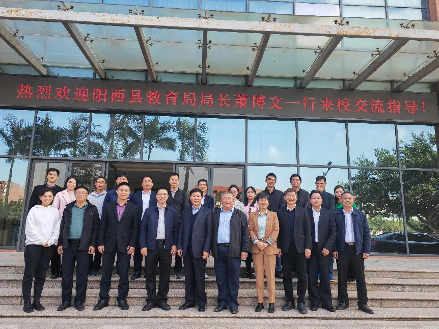 (党政办公室 报道)为深入实施百校联百县助力“百县千镇万村高质量发展工程”,共谋发展思路,1月5日,阳西县教育局局长萧博文、阳西县中职校校长卢先养一行到我校调研交流。学校党委书记钟以俊、校长陈斗雪、党委副书记唐顺铁热情接待了客人并陪同参观了新工科实训中心、优秀传统文化教学实践基地,经济管理学院电子商务实训室。