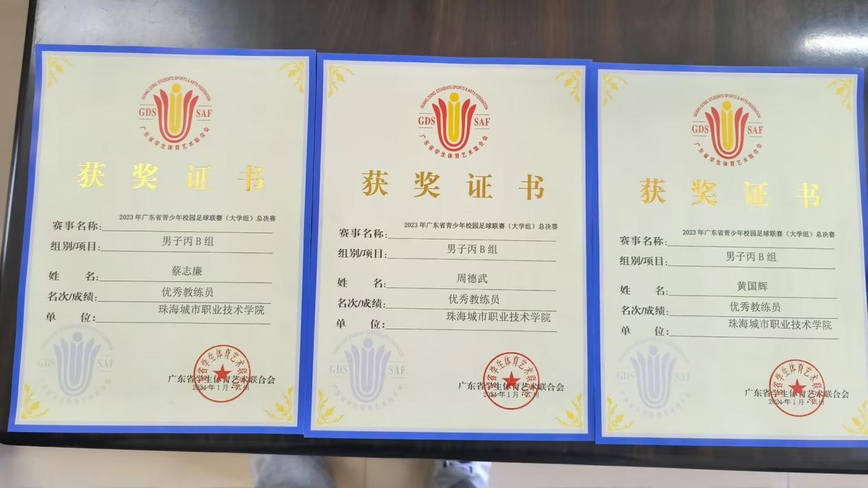 我校参加该项赛事丙B组比赛,该组别共有26支来自全省各地职业院校参与角逐,经过12天的激烈比拼,队员们克服赛程密集、客场作战等不利因素的影响,敢打敢拼,一路高歌猛进,在半决赛中点球惜败给赛事冠军的不利情况下,以2:1干净利落赢得第三名,取得近几年我校足球赛最好成绩。蔡志廉、周德武、黄国辉三位老师获得优秀教练员荣誉称号。这次足球赛,我校运动员们充分展现出了团结协作、积极拼搏的精神风貌,足球队将以此次比赛获得好成绩为契机,继续保持积极的态度,不断提升自我,带动更多同学参加体育运动,磨炼意志、强健体魄。(审核:梁伟东)