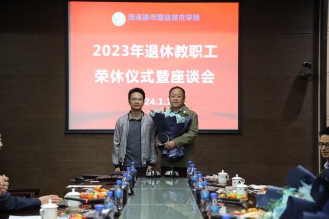 (人事处 报道)为落实《广东省加强新时代高校教师队伍建设改革实施意见》要求,对学校教职工数十年辛勤工作和奉献的肯定与感谢,礼敬退休教师,弘扬尊师风尚,同时也是对在岗教职工的激励。2024年1月17日下午,学校举办了2023年退休教职工荣休座谈会,欢送2023年退休荣休教职工。学校党委书记钟以俊、校长陈斗雪等校领导和相关部门领导、青年教师代表参加了荣休座谈会。