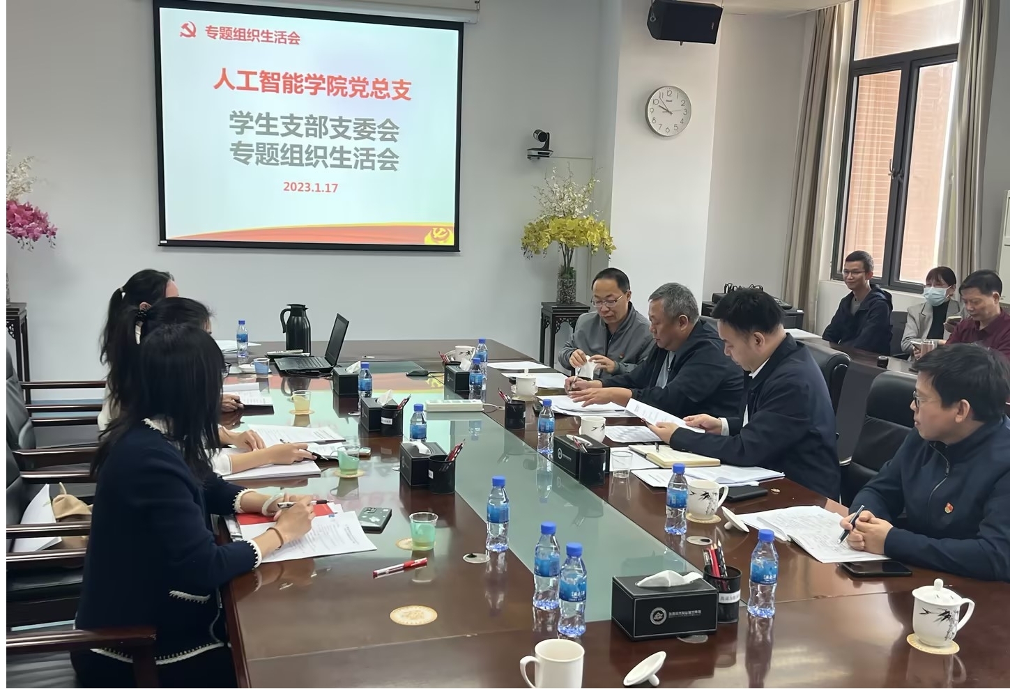 (人工智能学院 报道)1月17日上午,人工智能学院学生党支部委员会在行政楼1107召开专题组织生活会。校党委副书记、校长陈斗雪同志、人工智能学院党总支书记郭江平同志、党委学生工作部周雁嫦同志参加了会议。