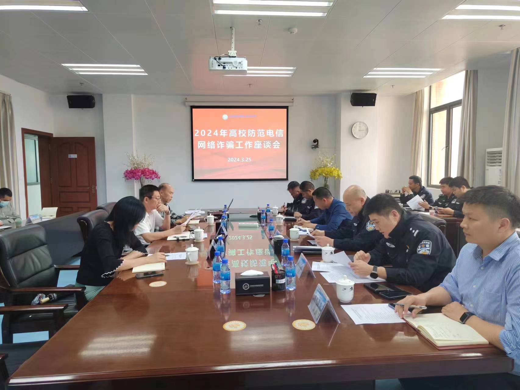 (后勤保卫处 报道) 3月25日下午,我校与珠海市金湾区公安、综治办等部门召开电信网络诈骗联席会,副校长刘向阳、党委学生工作部、后勤保卫处及各二级学院代表参加会议。