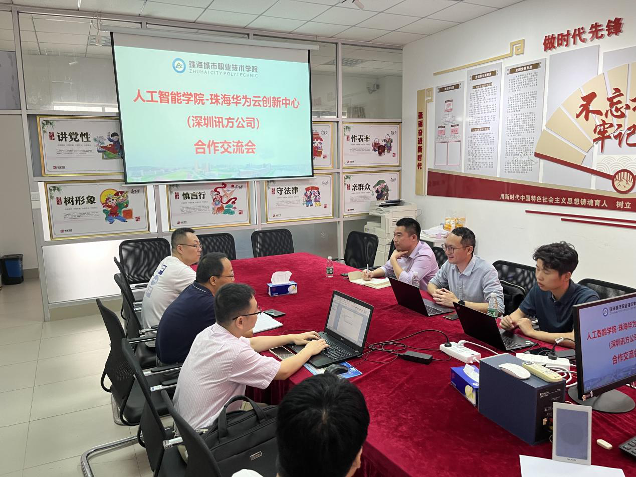 (人工智能学院 报道)云上智城项目是珠海市政府重点打造的算力共享项目,6月18日,人工智能学院院长马维旻和大数据专业群骨干教师一起,与珠海华为云创新中心、深圳市讯方科技有限公司的相关代表在格力楼6419就合作推动云上智城项目进行了深入的交流。