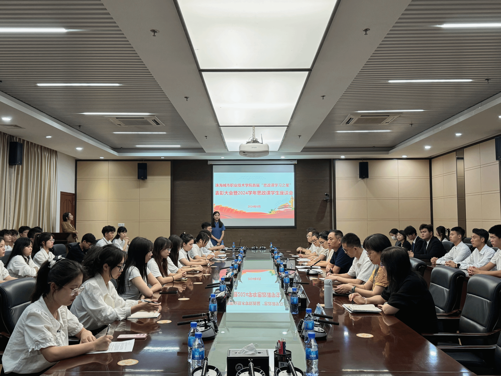 (马克思主义学院 报道)为贯彻落实习近平总书记关于学校思政课建设的重要指示精神,充分调动学生学习思政课的积极性、主动性和创造性,提升思政课教学的亲和力和针对性,6月20日下午,马克思主义学院在商贸楼212会议室举行首届“思政课学习之星”表彰大会暨2024学年思政课学生座谈会。马克思主义学院院长白立强和部分教师参加了本次活动。