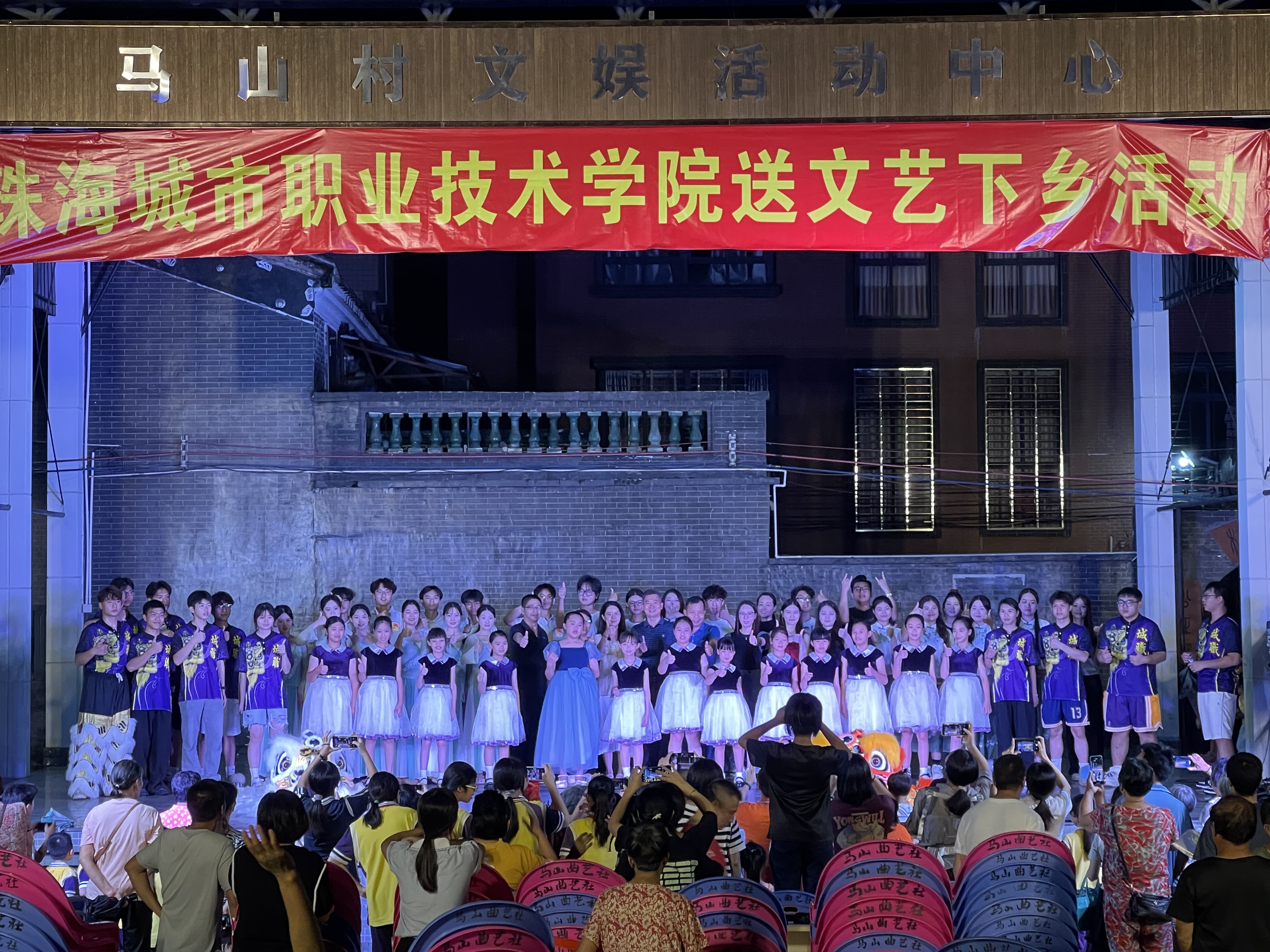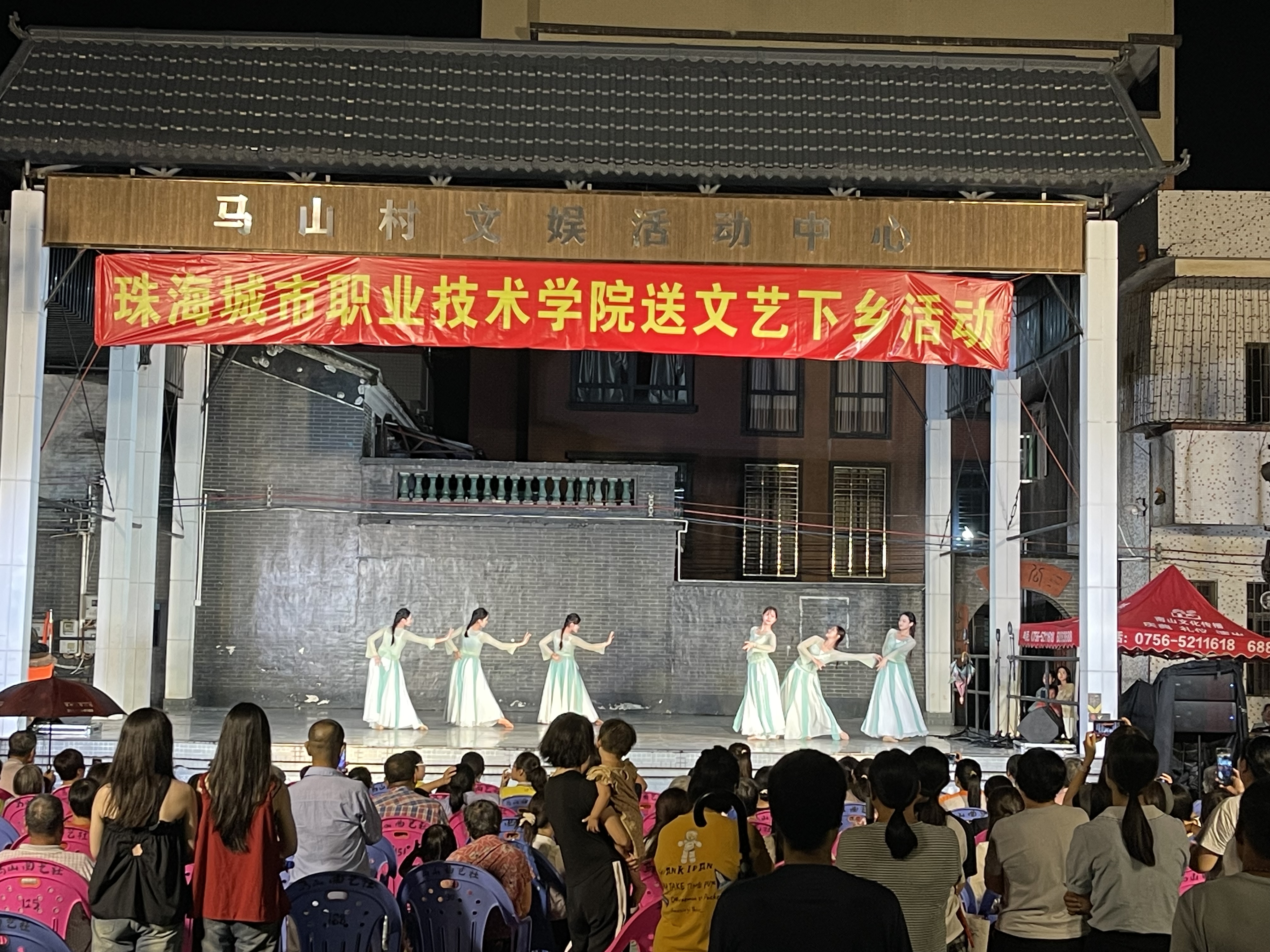 (校团委 报道)9月14日晚,我校青年大学生“百千万工程”突击队走进珠海市斗门区马山村开展“送文艺下乡”活动。学校有关职能部门负责人、马山村村委领导,以及马山村村民等800余人观看了演出。