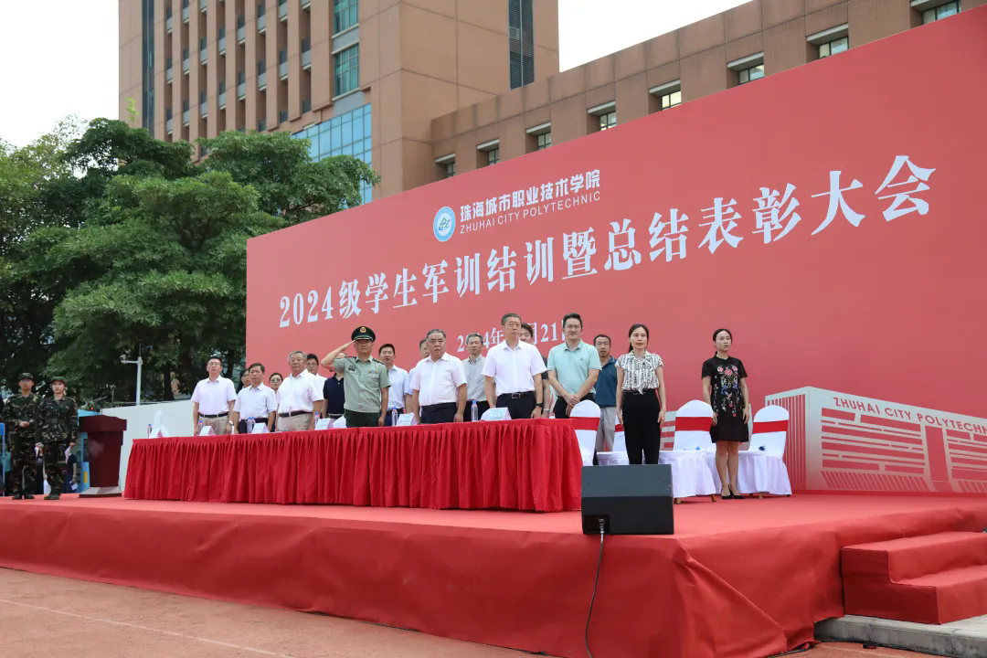 (学生工作部 报道)10月21日上午,2024级新生军训总结大会在我校操场举行。承训部队参谋,广东科学技术职业学院保卫部领导老师,我校党委副书记、校长陈斗雪,党委副书记唐顺铁,党委副书记、纪委书记曾建平,党委委员、副校长刘向阳,党委委员、宣传部部长周剑平,学校各职能部门、二级学院负责人、全体新生班主任、辅导员,全体教官以及新生出席大会。