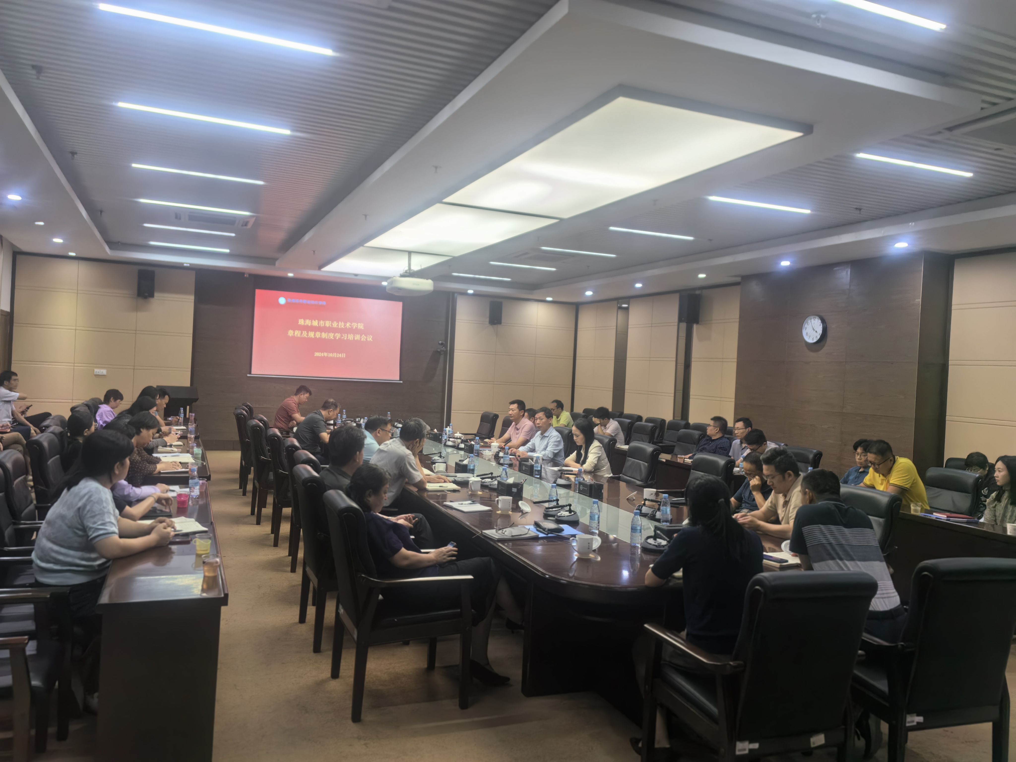 (党政办公室 报道)10月24日下午,我校在行政楼212会议室召开章程及规章制度学习培训会,学校党委副书记唐顺铁出席会议,各行政、教辅单位负责人,二级学院院长,各单位相关业务经办人参加会议。