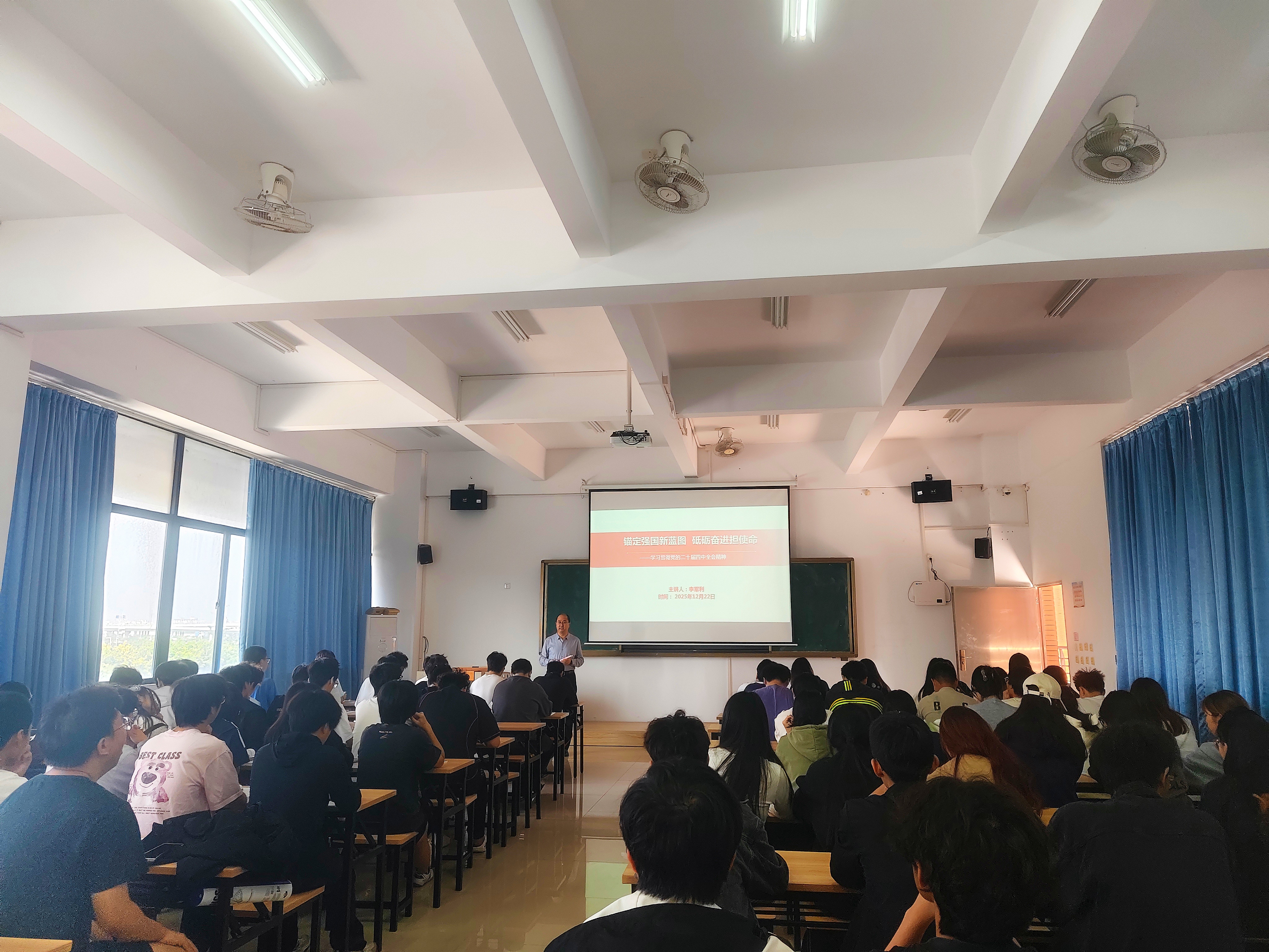 (马克思主义学院 报道)12月22日,我校党委委员、副校长李军利走进弘毅楼309教室,以“锚定强国新蓝图 砥砺奋进担使命——学习贯彻党的二十届四中全会精神”为题,为2024级港口与航运管理专业2班和2024级电子信息工程技术专业3班的同学讲授了一堂思政课。