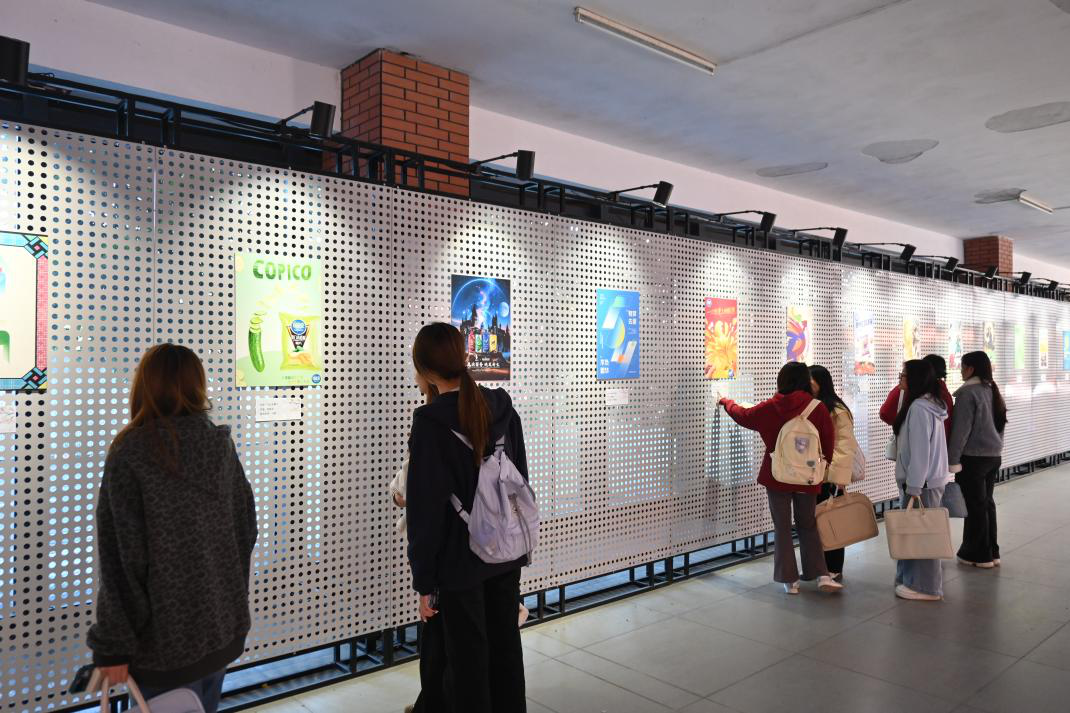 (人文学院 报道)1月8日,人文学院新闻采编与制作专业在我校博雅楼一楼艺术展厅举办广告海报创作成果展。展览集中呈现2023级学生在本学期《广告策划与创意文案》《实训课程》两门课程中的优秀作品,旨在检验教学成效、激发专业热情,以生动的视觉形式展现学生从理论到实践的转化能力。