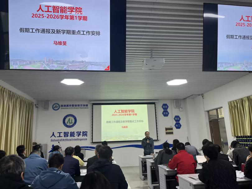 (人工智能学院报道)3月 4日下午,人工智能学院召开全体教职工大会,深入贯彻学校党委扩大会暨高质量发展务虚会工作部署和新学期全体教职工大会学校领导重要讲话精神,结合理论学习、工作部署、作风警示、思想动员四大主题,统一思想、凝聚共识、部署任务、推动落实,为新学期学院高质量发展奠定坚实基础。