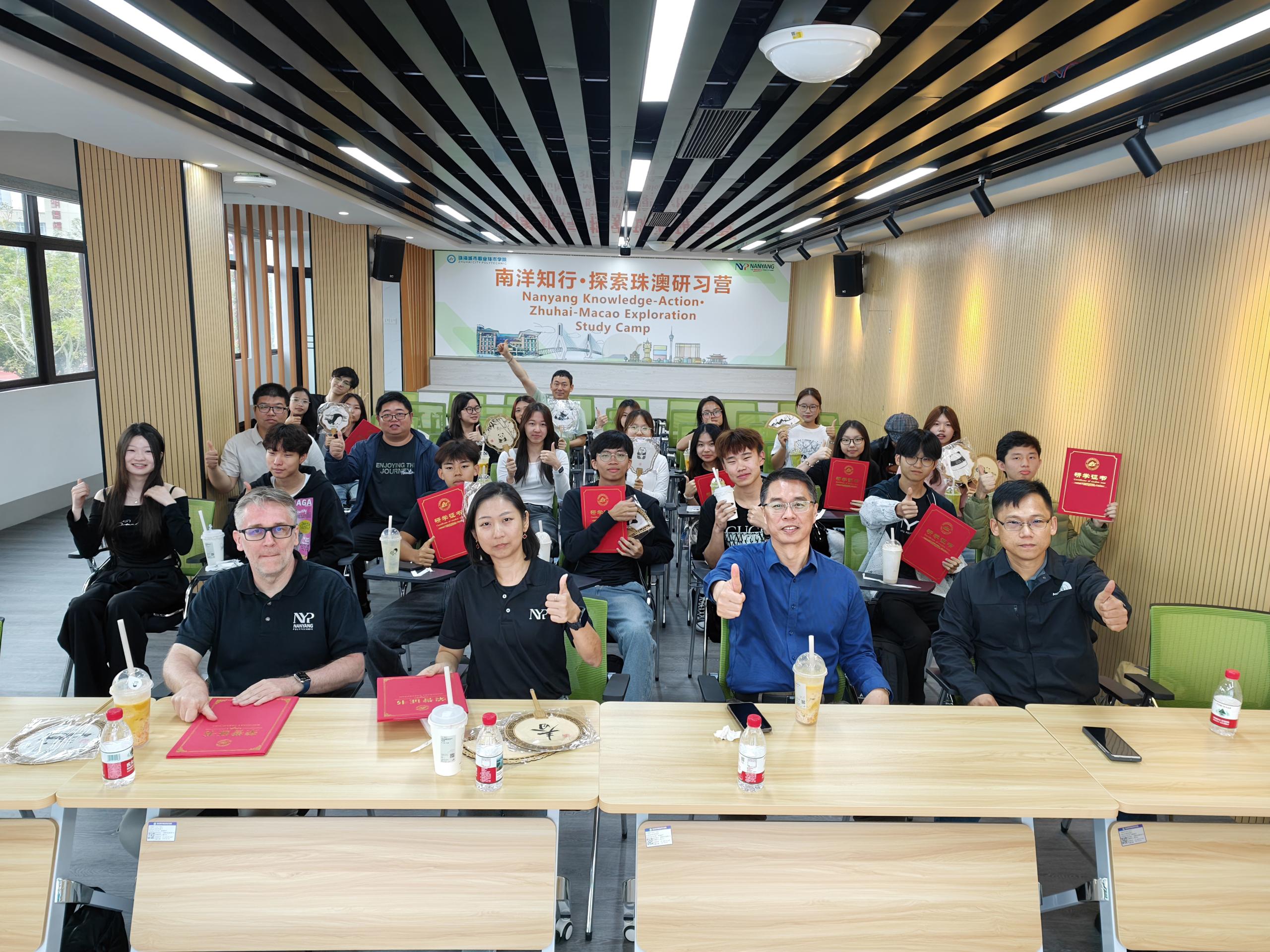 (校企合作处 报道)3月21日,由我校主办的第二期“南洋知行·探索珠澳研习营”圆满落下帷幕。新加坡师生团队在为期六天的沉浸式研学中,深入探访珠海与澳门两地,感受岭南文化的深厚底蕴与粤港澳大湾区的蓬勃活力。结业典礼在我校顺利举行,标志着本次跨文化交流之旅画上圆满句号。