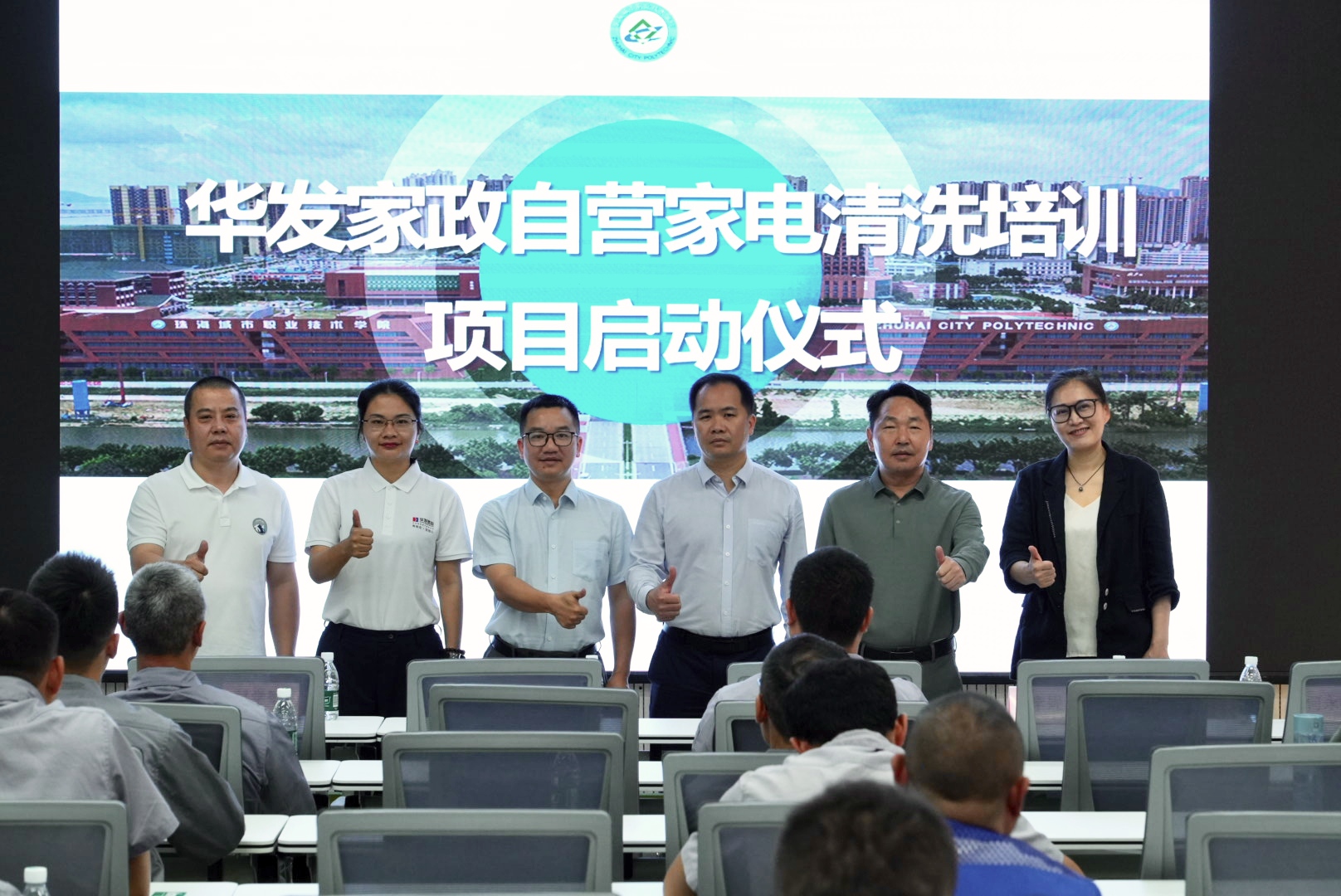 (人文学院 报道)3月25日,受华发家政服务(珠海)有限公司委托,人文学院在南粤家政产教融合实训基地为华发家政公司25名从业人员举办“空调清洁技能”专项培训。校企合作处副处长梅伯平、人文学院党总支书记李妮、副院长何永根,珠海华发家政公司副总经理谢冠球、服务总监付学敏出席开班仪式。
