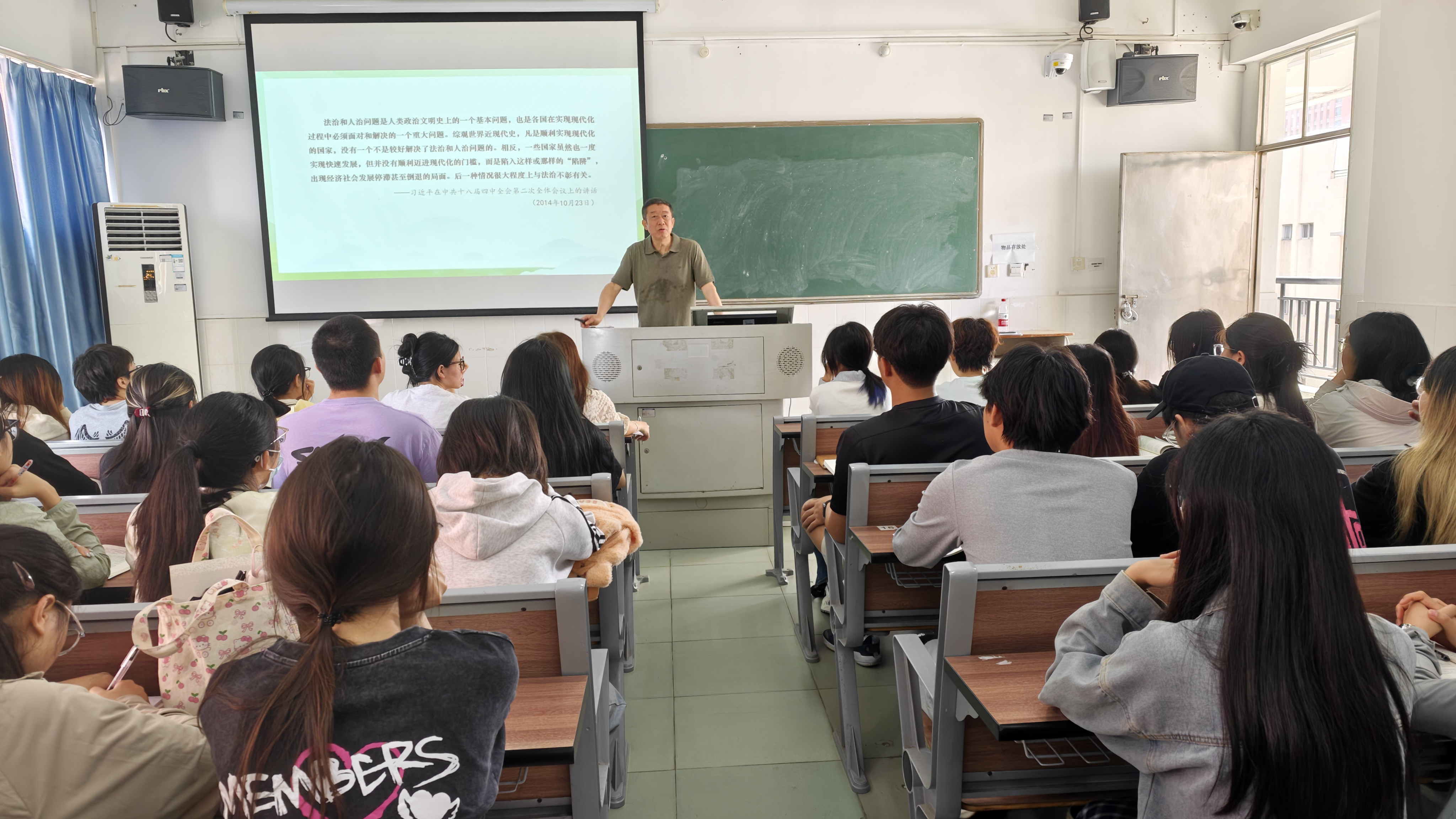 (马克思主义学院 报道)3月26日上午,校党委委员、党委宣传部部长周剑平来到崇文楼5505教室,为2025级现代家政服务与管理专业2班的同学们讲授了一堂以“培养社会主义法治思维”为主题的思政课。