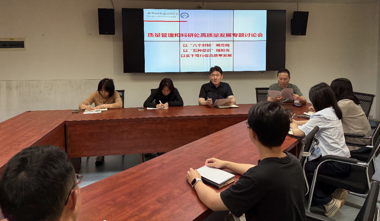 (质量管理和科研处 报道)为深入贯彻学校党委扩大会暨高质量发展务虚会精神,全面落实“六个对标”要求、强化“五种意识”,近日,质量管理和科研处召开高质量发展专题讨论会,聚焦内涵提升、科研创新与质量保障,谋划推进部门年度重点工作。部门全体成员参会,会议由郭汉军处长主持。