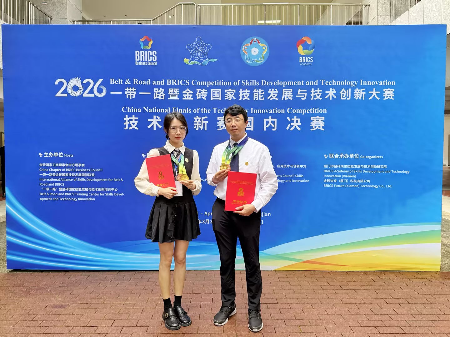 (信息技术中心 报道)近日,2026“一带一路”暨金砖国家技能发展与技术创新大赛之技术创新赛全国总决赛结果揭晓。我校信息技术中心团队领衔申报的《基于智能多语言转化的教育视频资源共享与应用平台》和《超微感知:高性能生物传感技术的领跑者》两个项目,在与全国众多本科及职业院校的激烈角逐中脱颖而出,分别荣获国赛一等奖和三等奖。这一成绩不仅是我校在高水平技能竞赛中取得的重要突破,更是信息技术中心深入践行“六个对标”要求、强化“五种意识”,积极服务学校高质量发展的实际行动。