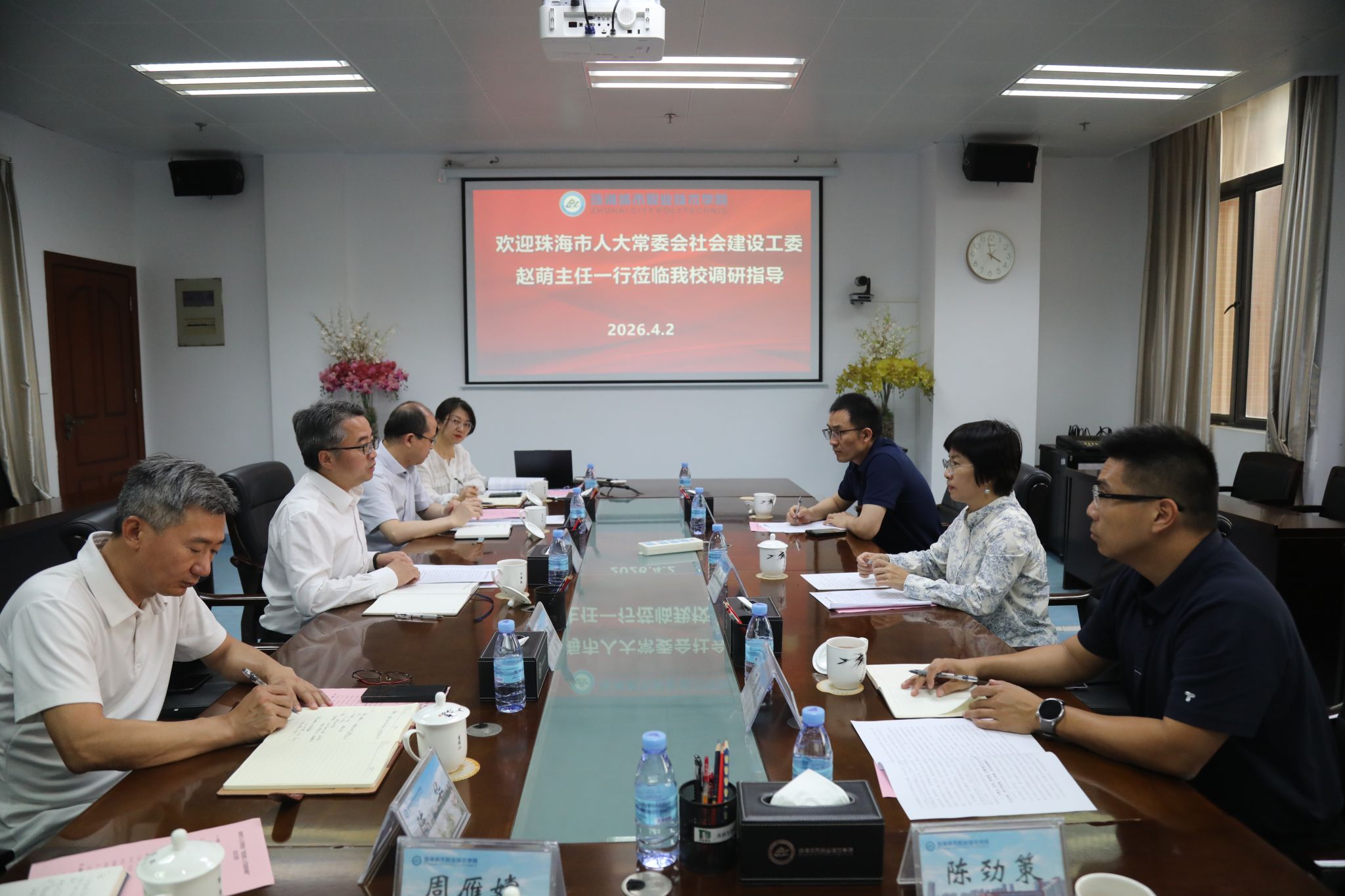 (党政办公室 报道)4月2日,珠海市人大常委会社会建设工作委员会主任赵萌莅临我校,就高技能人才发展工作开展专题调研。学校党委书记习恩民,党委委员、副校长李军利接待调研组,党政办公室、教务处、学生工作部、校企合作处等相关部门负责人参加座谈。