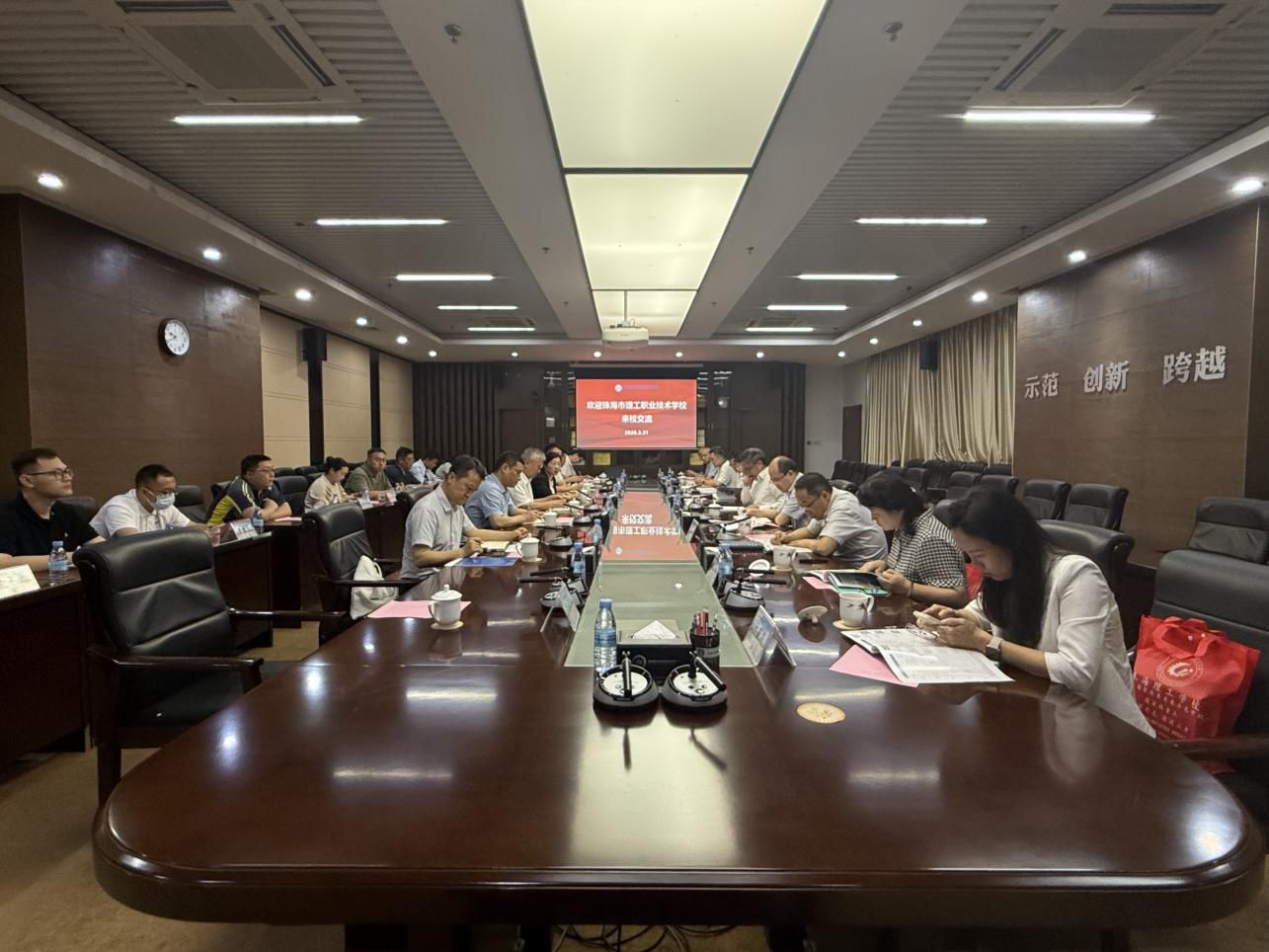 (教务处 报道)3月31日,珠海市理工职业技术学校校长梁柏健一行来我校就中高职三二分段合作一事进行交流。学校党委书记习恩民,党委委员、副校长李军利,教务处及相关二级学院负责人参加。